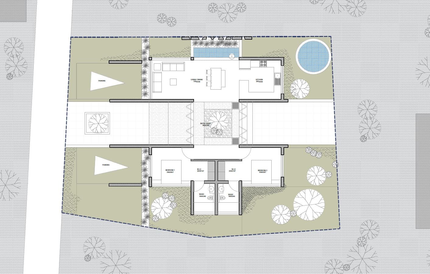 Courtyard Minimal is an intelligent home built from clarity rather than complexity. The plan is organised around two internal courts that bring light, air, and nature into the centre of everyday life. A single linear skylight acts as the home’s spine, creating a soft, even daylight that dissolves the boundary between inside and outside.