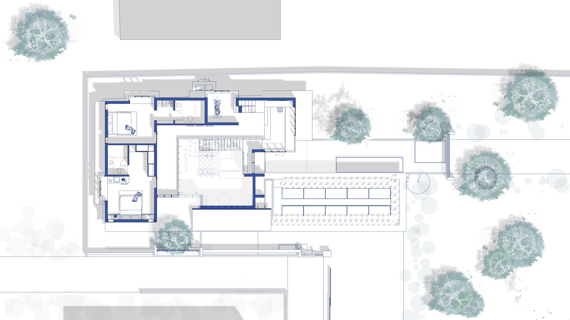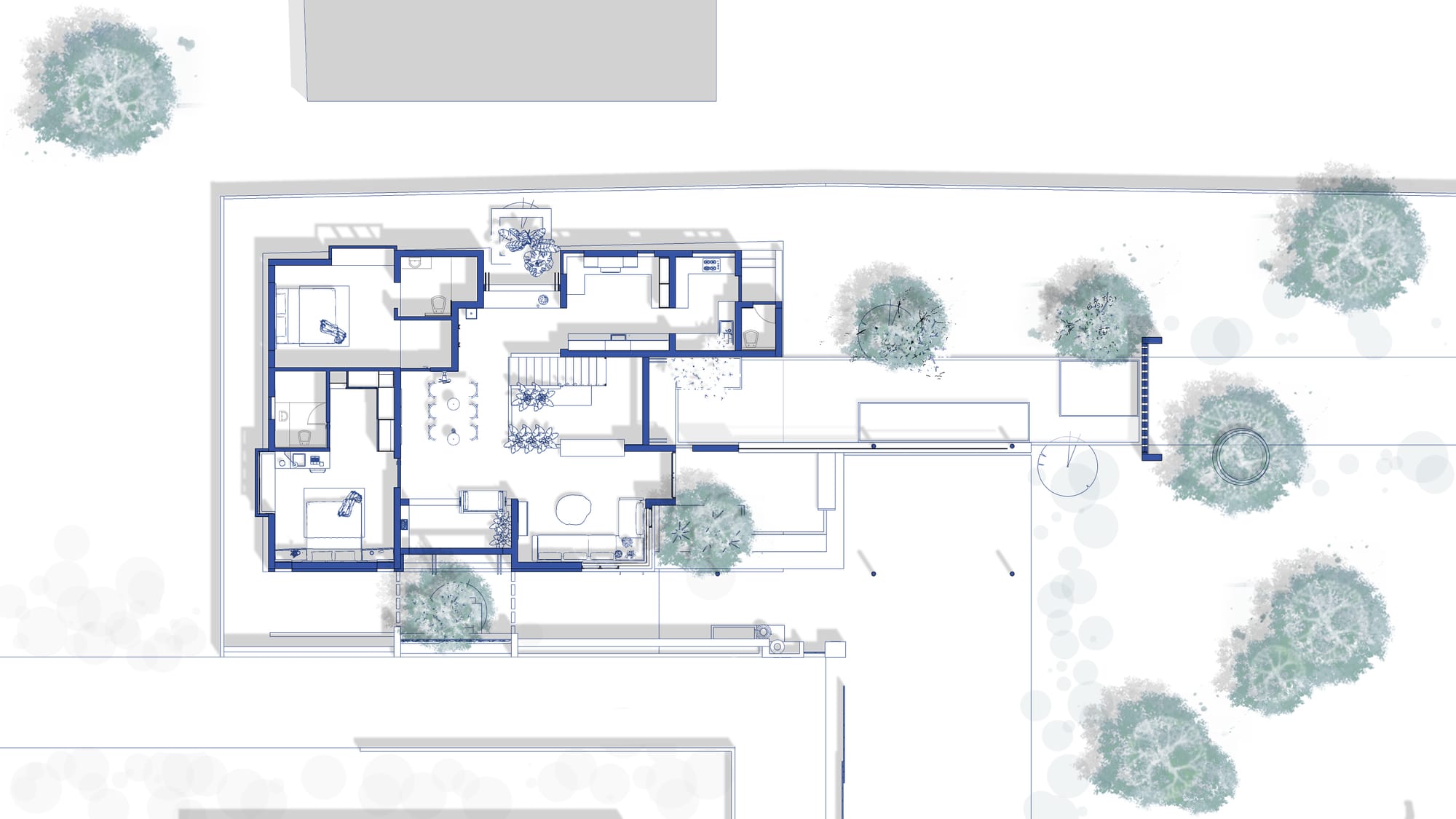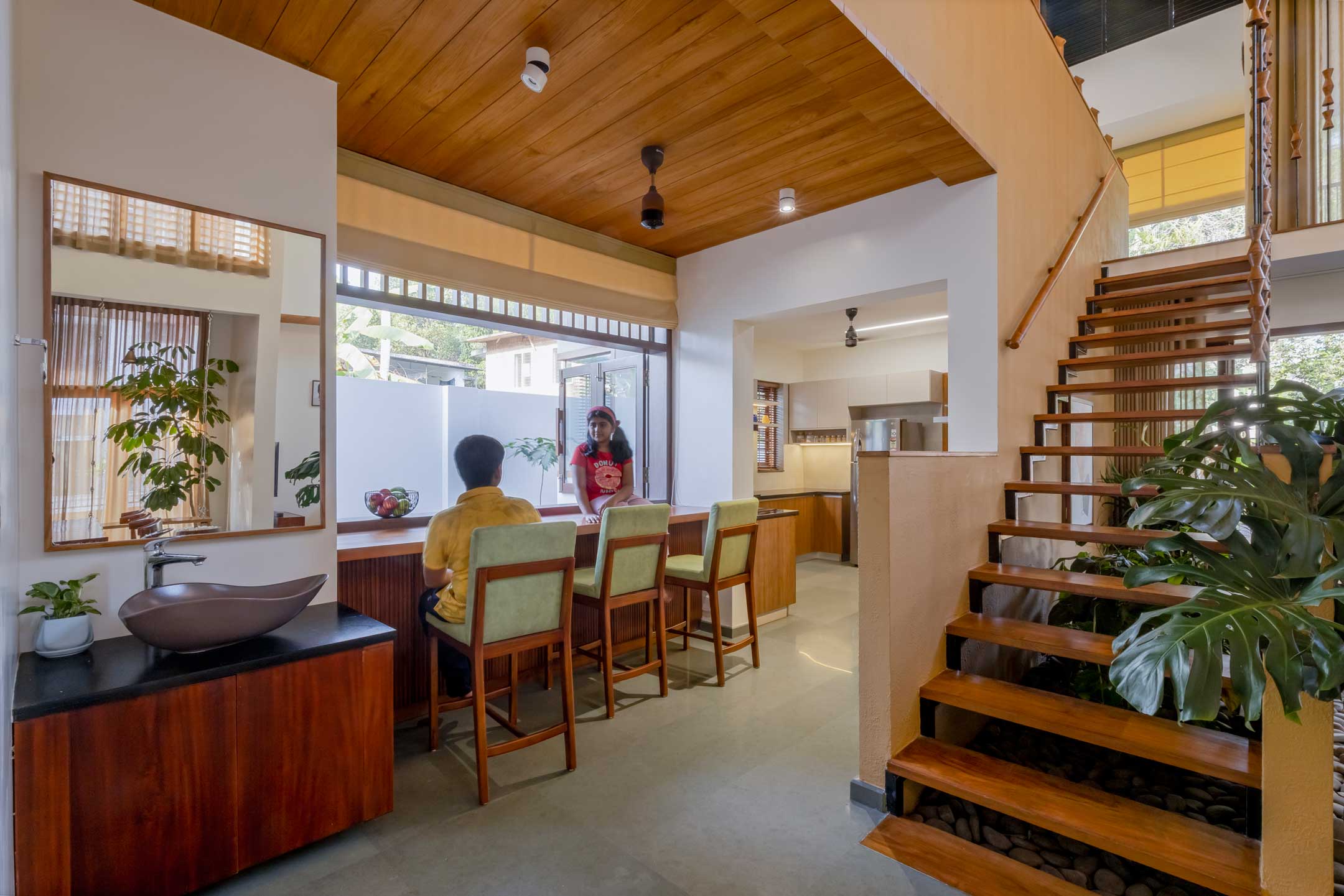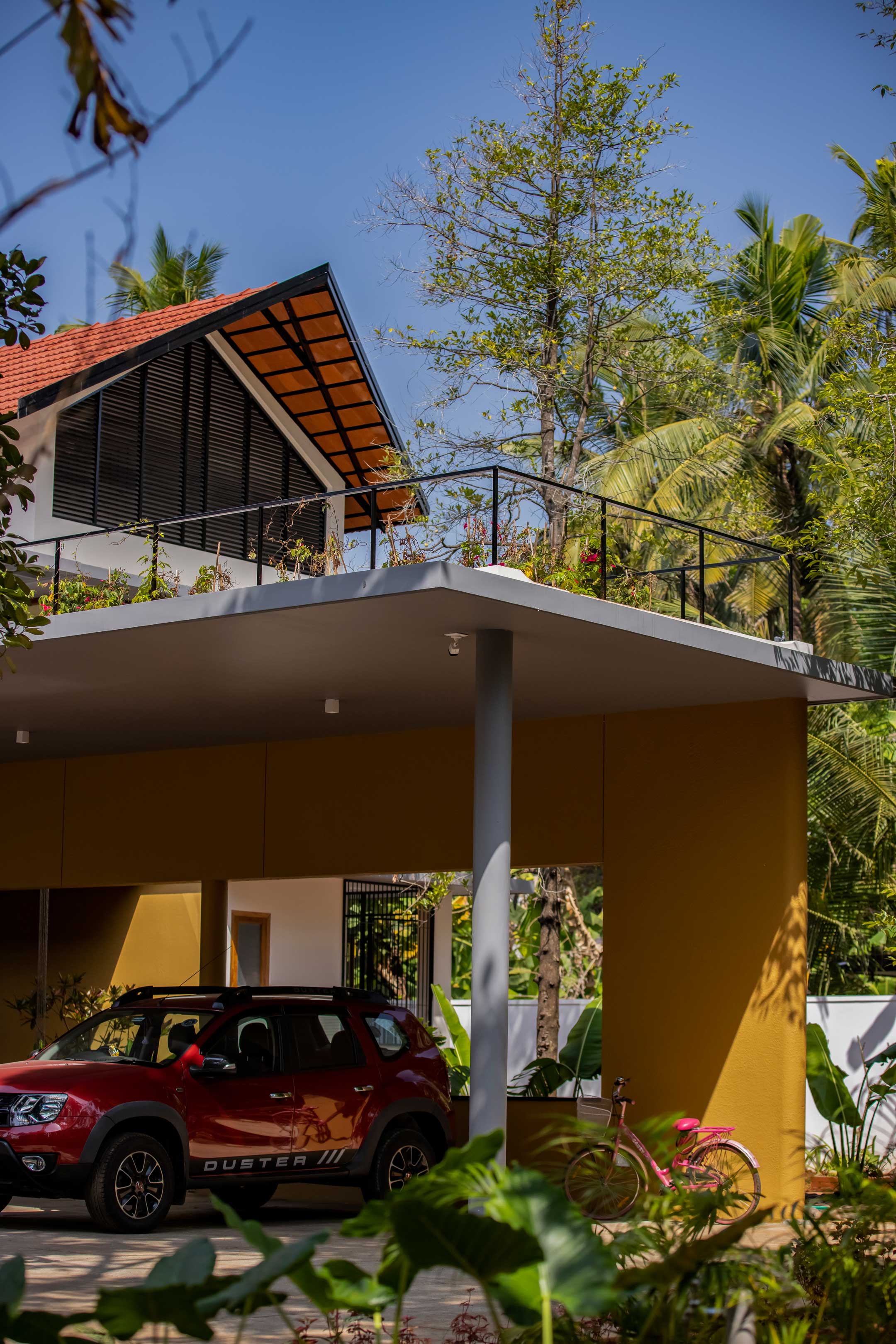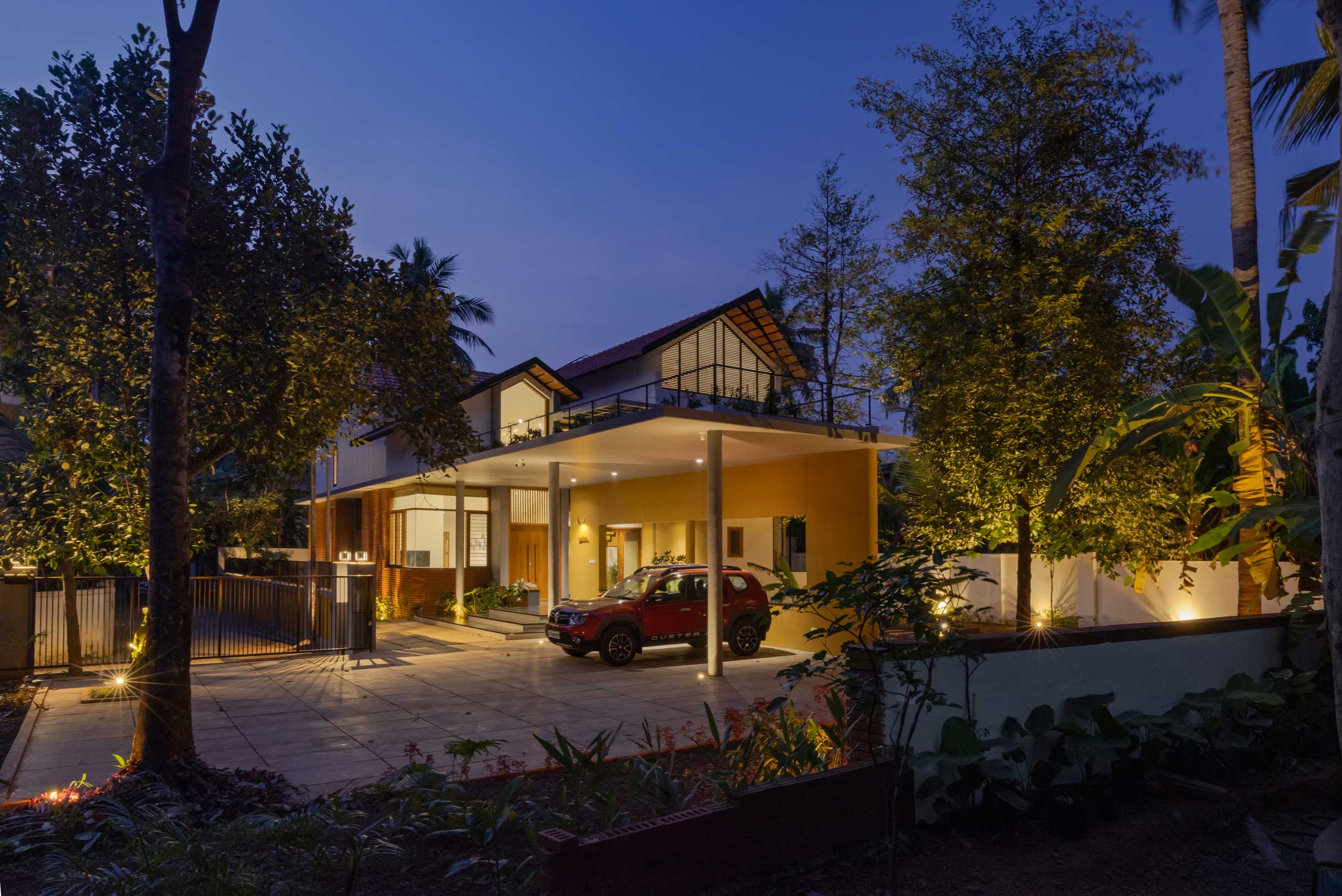 The site located in a residential area in Kannur is designed for a family of 5. The brief was to create spaces that has sufficient natural lighting and ventilation and also to incorporate the 2 nutmeg trees at site.