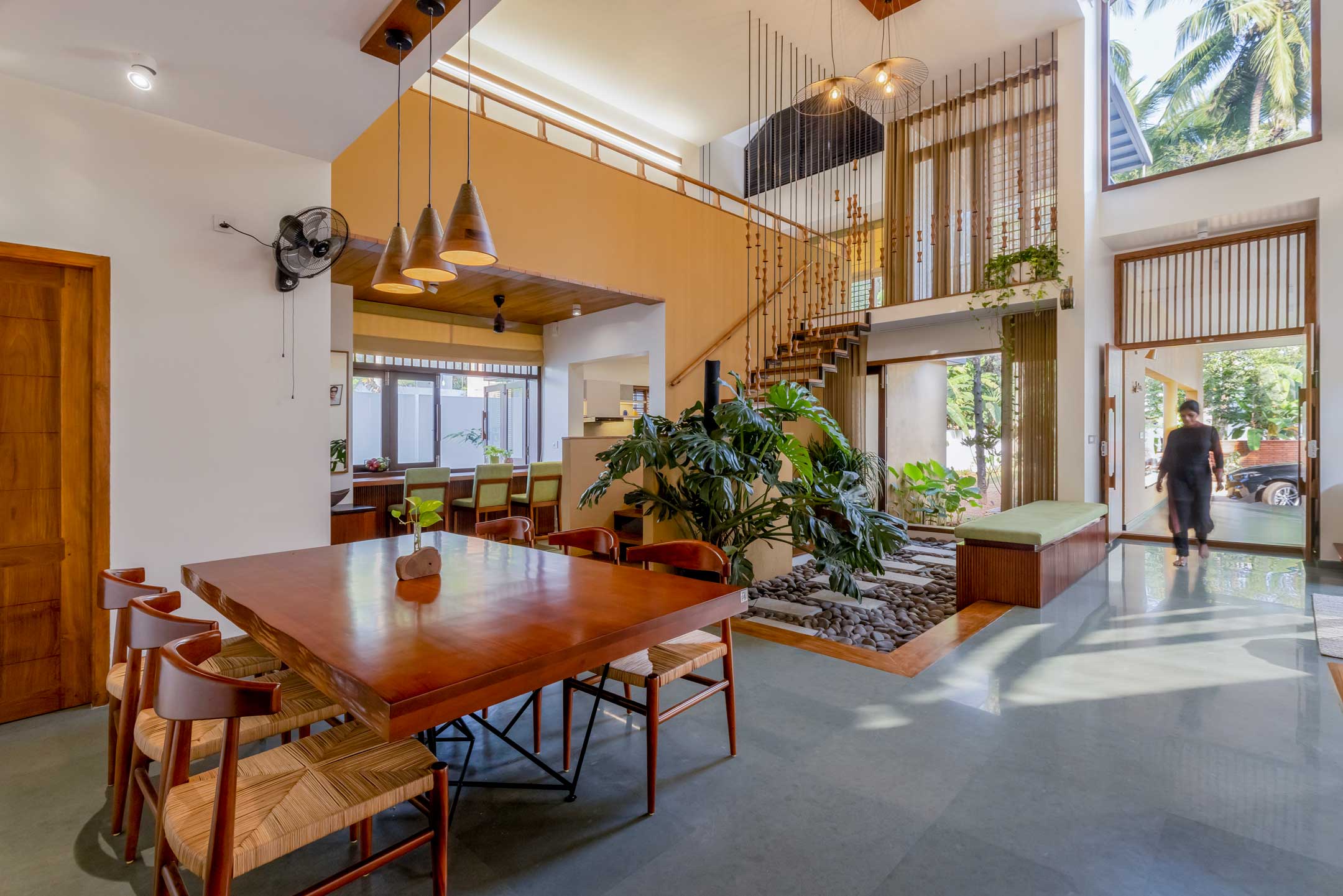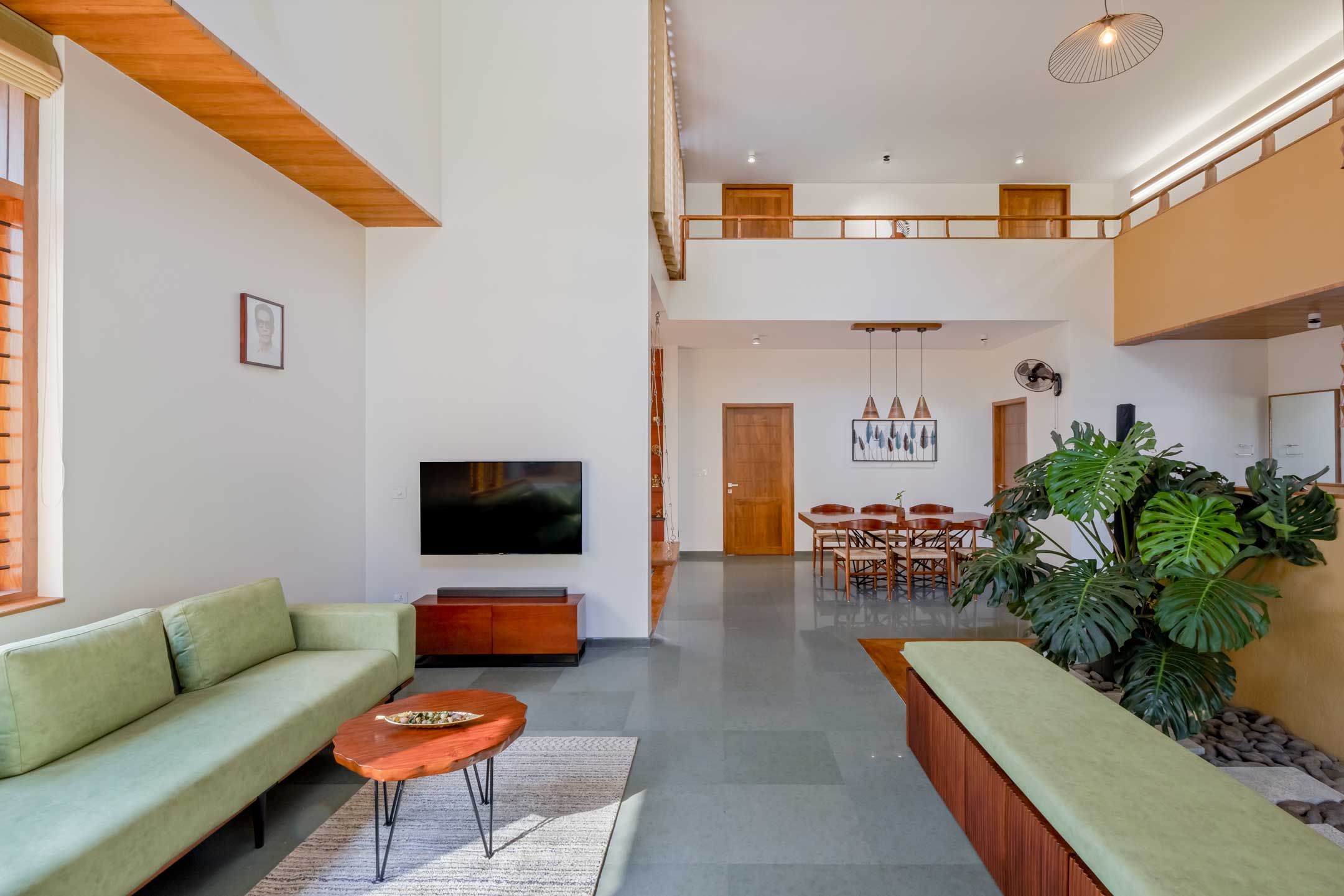 A huge double height space is designed in the common areas thus bringing a very lively sense of volume in the interiors.