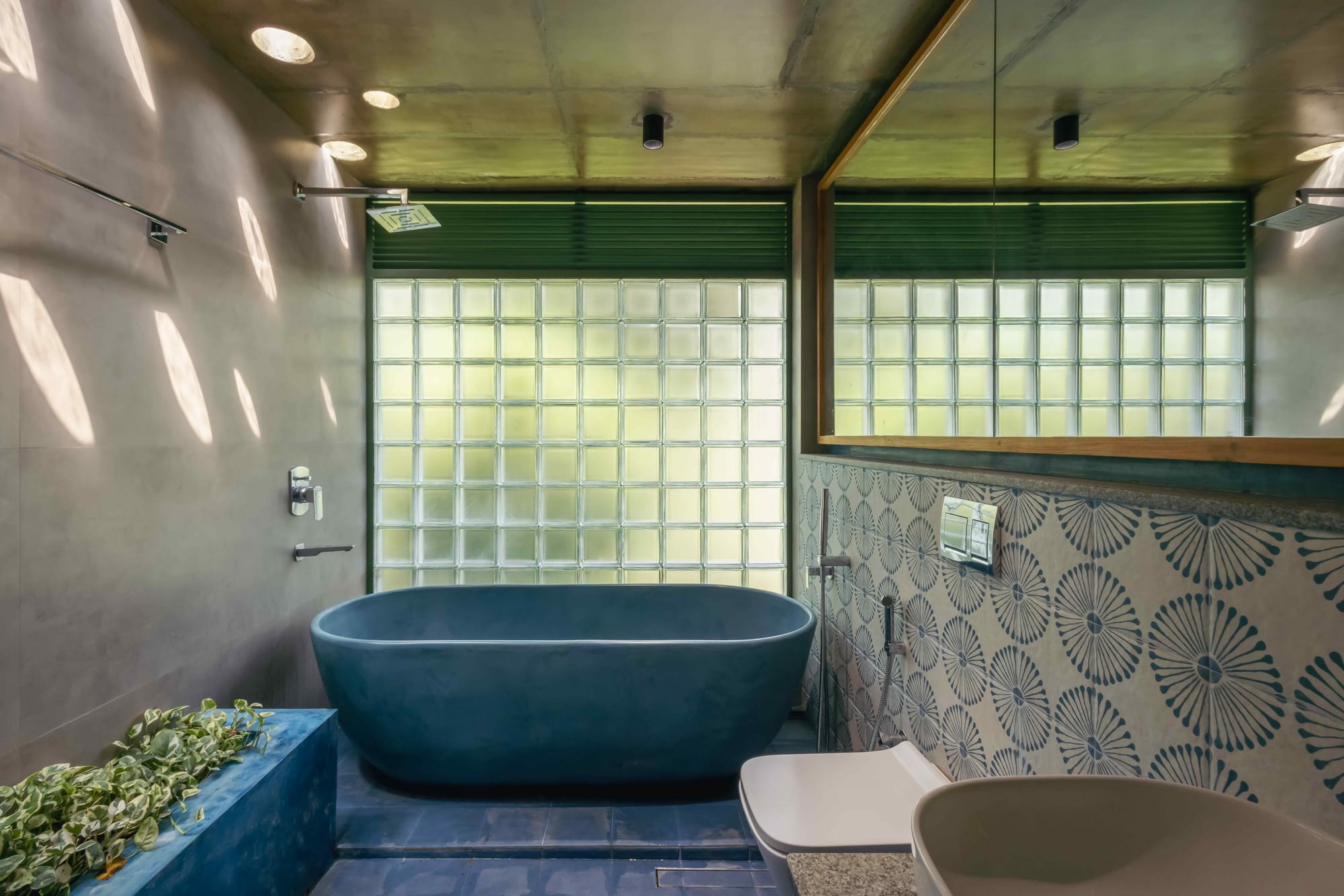 Glass Blocks:Used in bathrooms to introduce diffused natural light